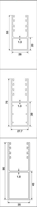 Extruded aluminium guide channel profiles for SL-55, SL-56, SE-60, SE-62, SE-63, ST-56 |