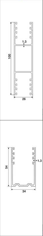 Extruded aluminium guide channel profiles for SL-55, SL-56, SE-60, SE-62, SE-63, ST-56 double guide |